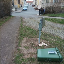 Již delší dobu je zcela zničená cedule č. 6 na cyklostezce od psího cvičiště směrem k rakovnickému útulku.